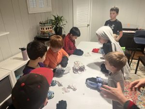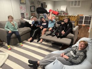 Conor planned a day-after Halloween party…. Jordan and I beat Elliott and Clayton in the mummy-wrapping contest