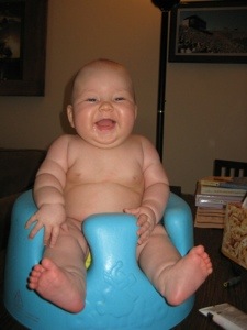 Haha! Stella still loves to sit in the Bumbo (and definitely fits it better now than she did as a chubby baby!). 🙂