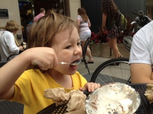 We also convinced Dad to meet us for a little, err… big, delicious super special treat – a 3-scoop sundae from Ghiradelli’s. Boy, we’re going to do this again!