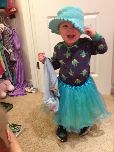 Look who had a fun time playing dress up with his big sister….