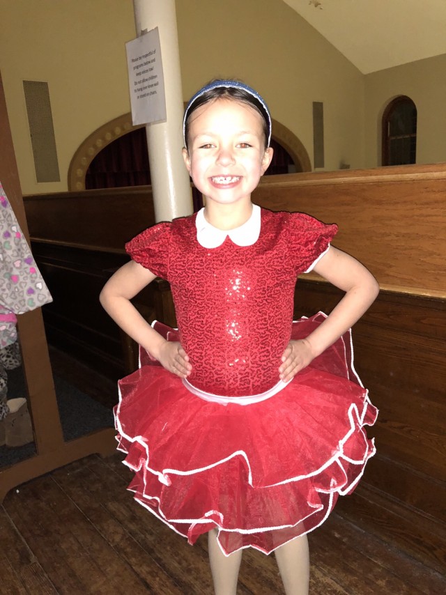 Costumes are starting to come in! Here’s the one for Annie! Can you believe how big this girl is?!? And she totally has the dancer smile and pose down! I think she will have three or four dances this year including her one with Dad!