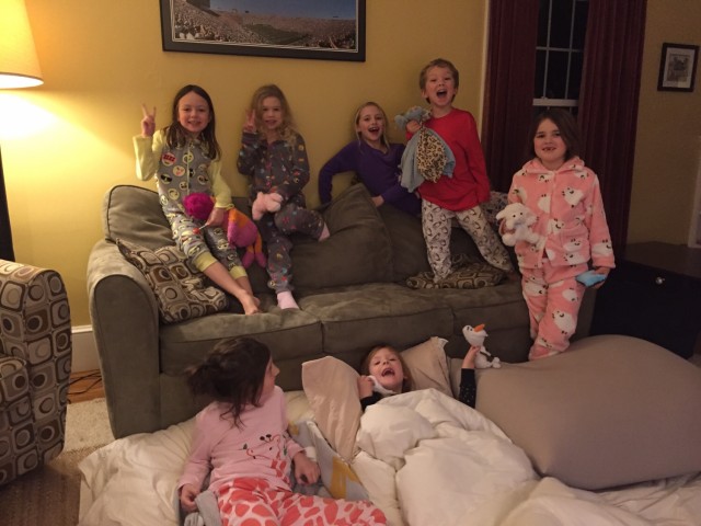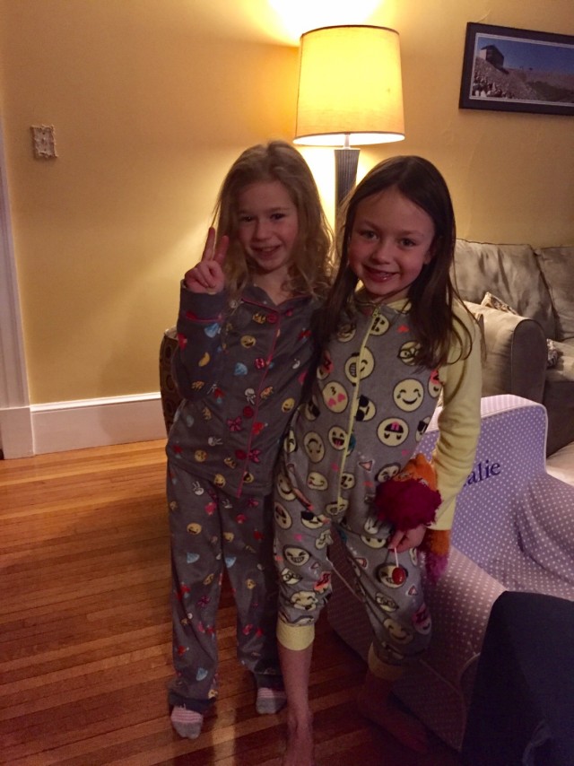 After the holidays, Nat invited a few friends over for a movie bday party. It was about zero degrees outside so cozy pjs were perfect. The kids liked the ice cream sundaes before watching an “old fashioned” movie – Honey I Shrunk the Kids. The hit gift was the sequin clothes and accessories that change views. You flip it to reveal a new pattern. Emojis are super popular too. Aren’t those pjs cute?!
