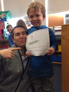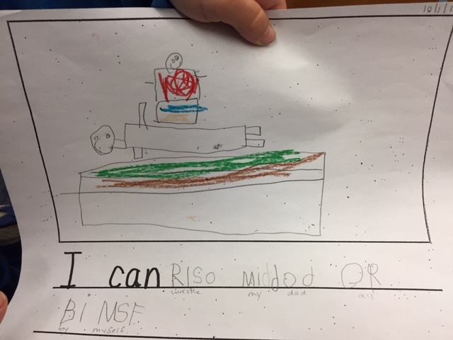 He also LOVES to wrestle. That’s what he, Jordan and Natalie are doing as I type. When we dropped in at his school one day, Jordan was very pleased to see this writing product.