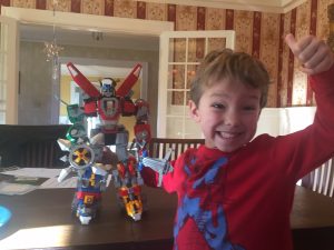 His dream came true – he got his #1 lego set (Voltron) for Christmas from Nana and more from Grandma too. (A huge thanks to our neighbor who works at Lego and scored us some good deals!) Elliott had seen the wrapped Voltron box underneath the tree for weeks – he guessed it right away. I joked with him that it was a pillow – he would shake it, lift it up and say “Mom, tell the truth.” He opened it on Christmas Eve and started right away (first pic). And worked on it everyday for six days straight – likely putting in 40-50 hours in total. If he got paid, he would have needed over-time. He did almost all the building by himself, more than 2000 pieces, for ages 16+. He is so proud. I’m super impressed too. There have been a couple meltdowns with the actual assembly because its challenging to get the mega pieces together. (My hunch is that the arms aren’t staying on because he somehow is missing some of the hinges and he has the left and right arms reversed.)