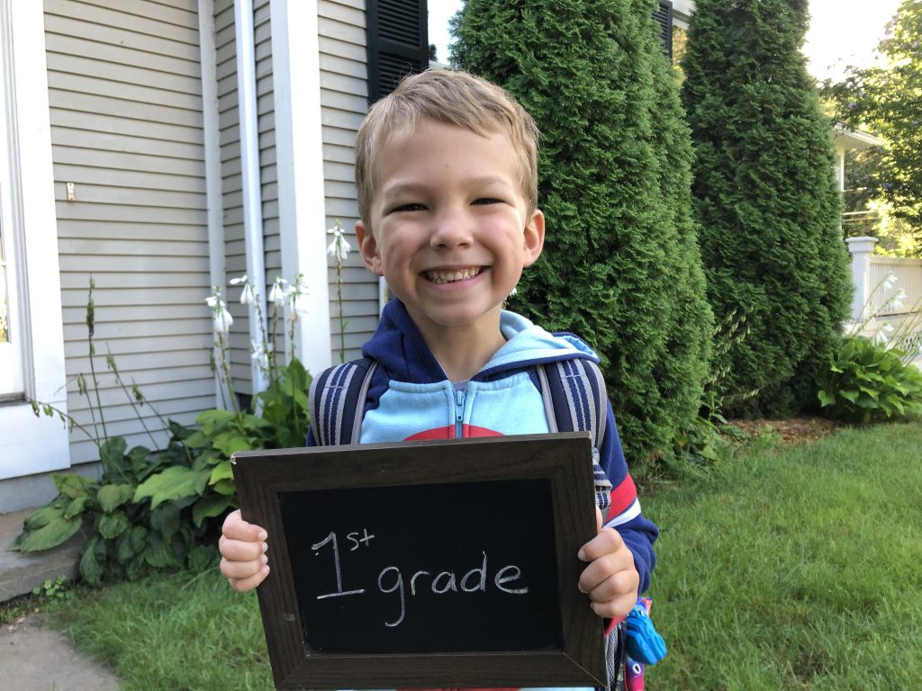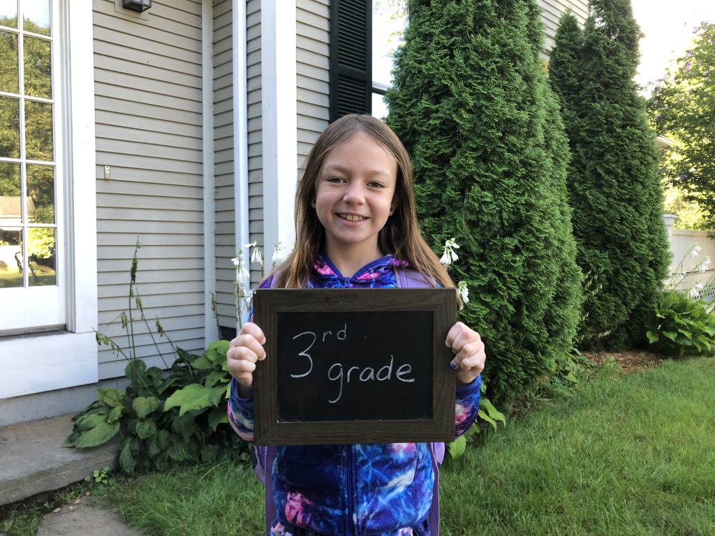 we we’re running late the first day of school…. and I wasn’t home in the morning for 2nd – 4th. So let’s be unique. 5th day of school pics!