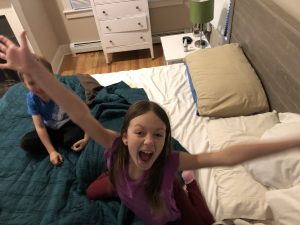 N and E also helped pick up dinner mess so We had time to play apples to apple. N and E also had a friendly wrestling tournament that didn’t end up in a fight or injury!! (If you talk to Nat, don’t tell her I wrote about that or posted pictures.). They also read and wrote a little today but my home schooling hasn’t started yet (reference the top many conference calls).