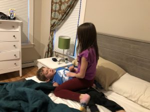 It was a full day of conference calls so the family fun was considerably less. Conor is loving baths so that occupied him for almost 30 min while the other two kids spent time on technology. Conor has a cold so he is crabbier than usual and J has a sinus infection so he needs to rest more than usual. Hoping this is the worst of it.