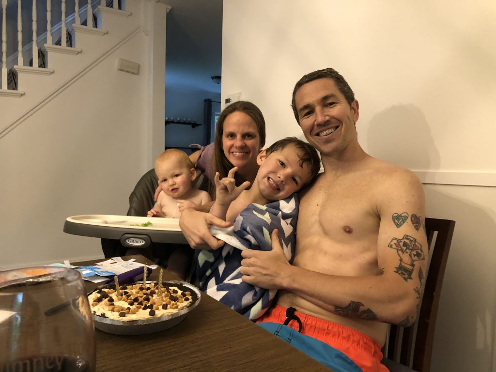 To celebrate Jordan’s birthday, I picked up Portuguese food because we were supposed to leave for Portugal (for our 15-year wedding anniversary trip – it would have been the first time we had ever been away from the kids for a week… and in fact, my first time ever being away from Conor for even a night). Natalie and I also made a peanut butter chocolate crust pie. And we had a post dinner family swim (well, I was the lifeguard – its wasn’t warm enough). Hence the no-shirt birthday pictures. The kids did an amazing job with their cards. Natalie also worked it out with Grandma to send Jordan’s favorite peanut butter chocolates for Seroogy’s, but super unfortunately, the place I hid it (above the fridge, in a box, in a plastic bag) was ransacked by a mouse. GRR. Something to address today.